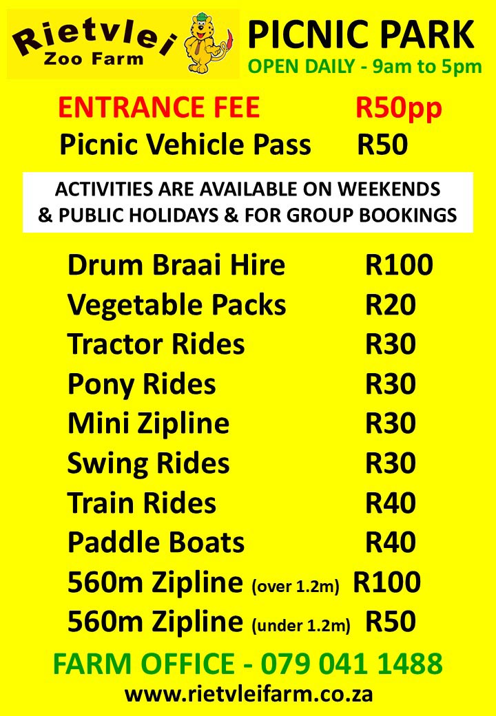 RIETVLEI ZOO FARM - PRICE LIST 2026